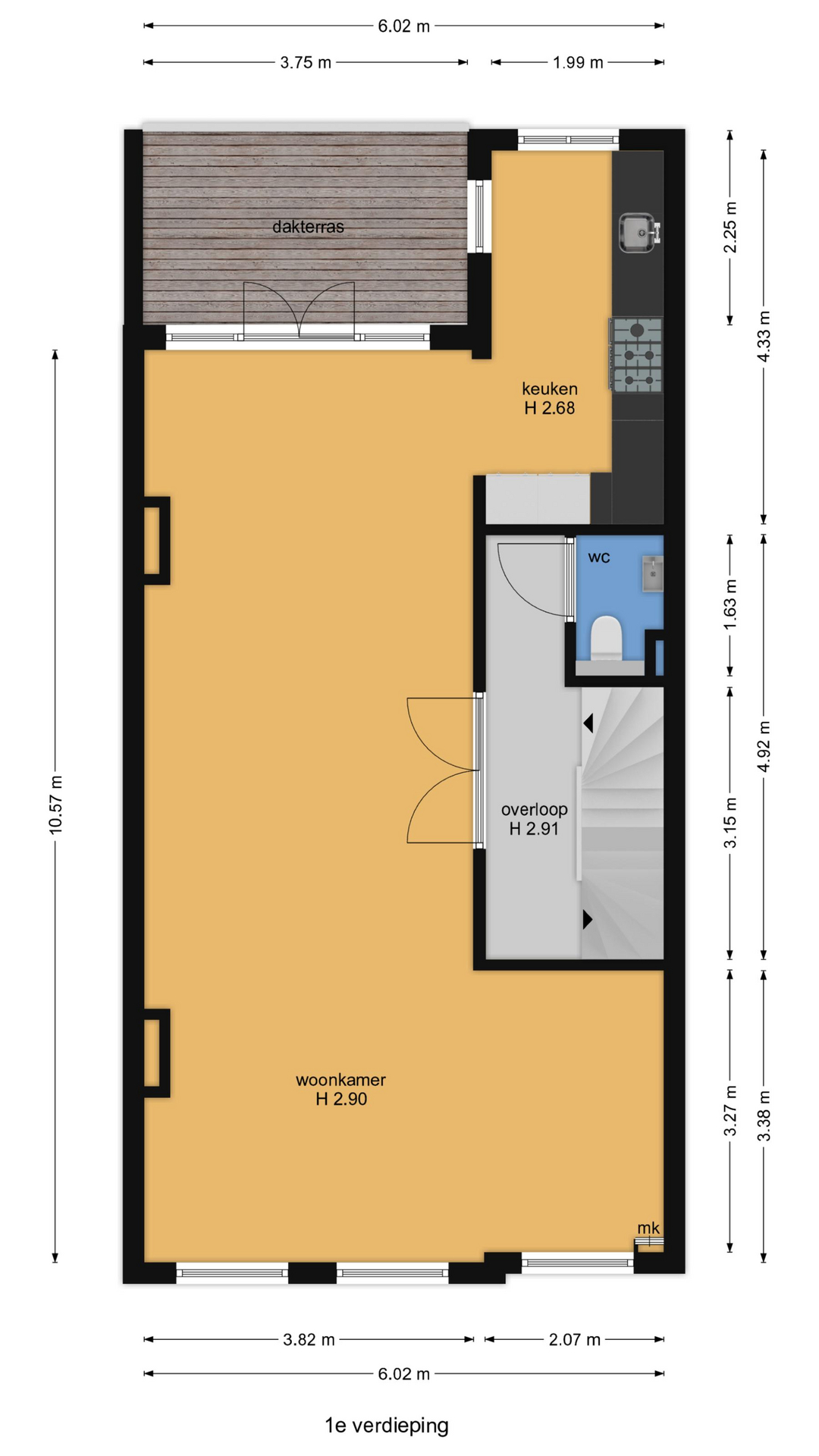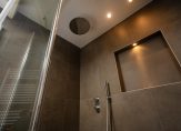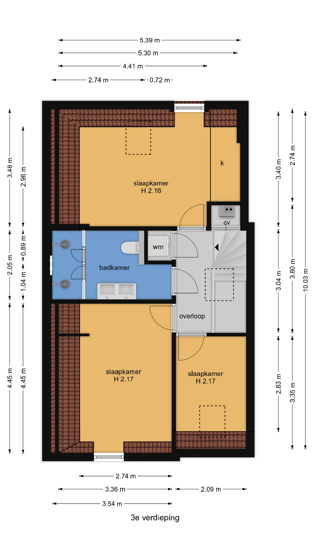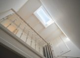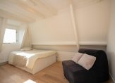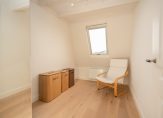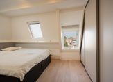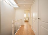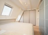 Vanuit de hal de trap naar de derde etage, overloop met fraaie balustrade en groot daklicht, kleine slaapkamer aan de voorzijde met dakraam, hoofdslaapkamer aan de achterzijde over de volle breedte met dakraam en ingebouwde kastenwand. Aan de voorzijde nog een goed formaat slaapkamer en de luxe tussengelegen badkamer voorzien van grijs tegelwerk, meubel met dubbele wastafel, wandcloset, handdoekradiator en dubbele inloopdouche.