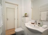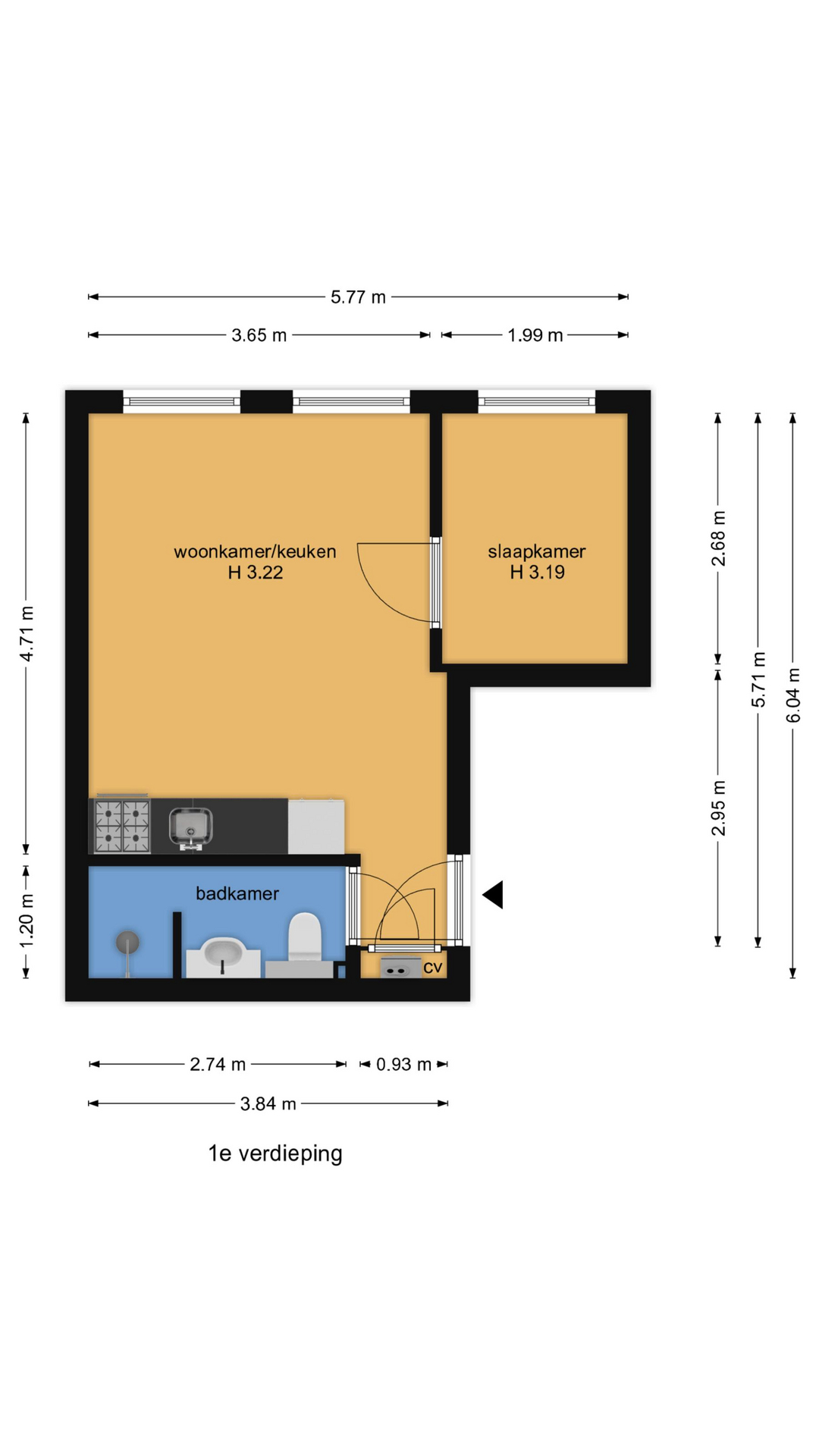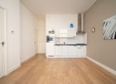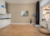 Gezamenlijke entree, trap naar de eerste etage, entree appartement, woonkamer met vrij uitzicht richting de Trompstraat, grote raampartijen met dubbel glas aan de voorzijde, moderne open keuken voorzien van gaskookplaat, wasemkap, gootsteen en koelkast. Vanuit de woonkamer de fraai betegelde badkamer voorzien van badkamermeubel met wastafel, wandcloset, handdoekradiator en inloopdouche. De slaapkamer is goed van formaat en gelegen aan de voorzijde van het gebouw.