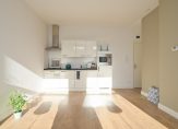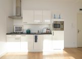Gezamenlijke entree, trap naar de tweede etage, entree appartement, woonkamer rustig gelegen aan de achterzijde van het gebouw, grote raampartijen met dubbel glas aan de achterzijde, moderne open keuken voorzien van gaskookplaat, wasemkap, gootsteen en koelkast. Vanuit de woonkamer de fraai betegelde badkamer voorzien van badkamermeubel met wastafel, wandcloset, handdoekradiator en inloopdouche. De slaapkamer is goed van formaat en rustig gelegen aan de achterzijde van het gebouw.