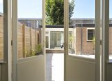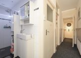 Entree begane grond, vestibule met tochtdeur naar de gang met toilet, lichte doorgebroken kamers en suite met