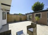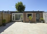 vrij gelegen en zonnige achtertuin van ca 51 m2 pal Zuid West met grote stenen schuur met elektra- en wateraansluiting, gelegen op eeuwigdurende afgekochte erfpacht middels obligatoire overeenkomst.