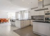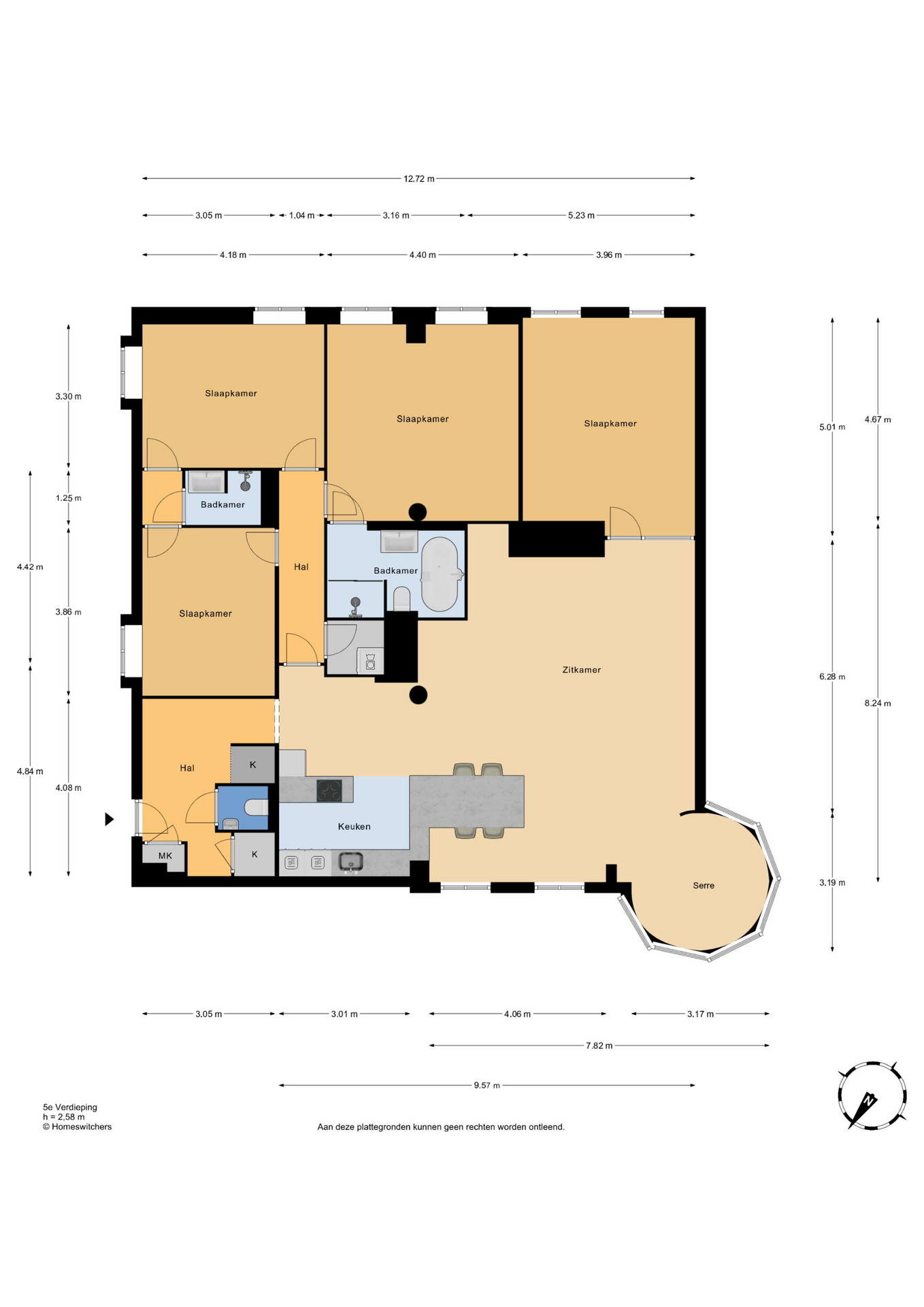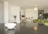 Entree van het appartement, ruime hal met een modern toilet met fonteintje en garderobe nis. Moderne meterkast en bergruimte in de vaste kasten. Entree naar de woonkamer van ca. 72m2. Direct rechts de heerlijk ruime en open keuken met alle benodigde inbouw apparatuur o.a. een vaatwasser, brede inductie kookplaat, afzuigkap, maar liefst 3 ovens en een magnetron, fraai natuurstenen aanrechtblad welke doorloopt in de eetkamer tafel met extra bergruimte. De woonkamer biedt schitterende uitzichten en ruimte aan een grote zithoek en eetkamertafel. Vanuit de serre met schuiframen een fantastisch vrij uitzicht over het strand en de zee. Doorloop naar de tv kamer/home office met stadse ver gezichten.