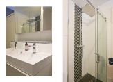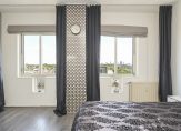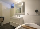 Twee goede maat slaapkamers met elk toegang tot de tussen gelegen gang naar de 2e badkamer met een inloopdouche en wastafelmeubel.