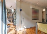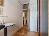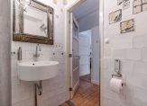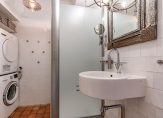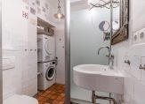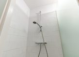 De gang geeft eveneens toegang tot beide slaapkamers en de badkamer. Deze heeft een wastafel, douche met schuifdeur en glazen wand, zwevend Japans toilet en een opstelplaats voor wasmachine en droger. De ruimte is voorzien van mechanische afzuiging.
