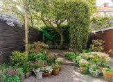 Via een gezamenlijke, afgesloten brandgang is er toegang tot de tuin; het huis is dus zowel via de tuindeur als de voordeur bereikbaar.
