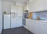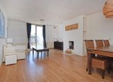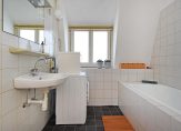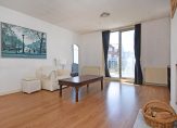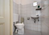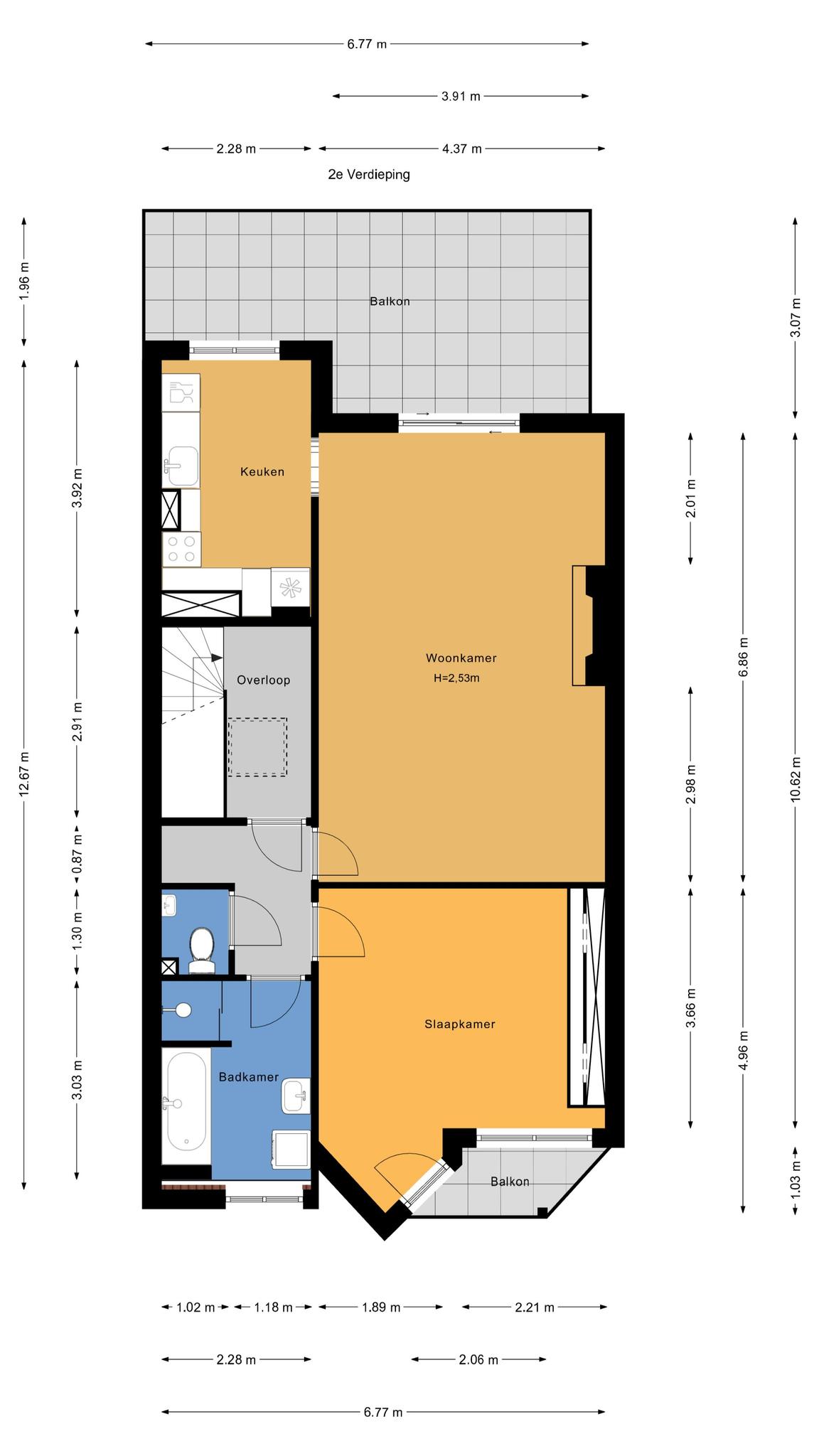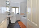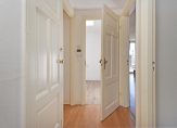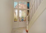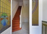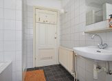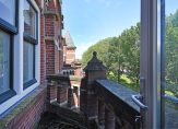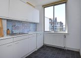 Entree van het gebouw met fraaie vestibule uitgevoerd in glas in lood, trap naar de 2e etage, entree appartement, hal met apart toilet, woonkamer aan de achterzijde met groot daklicht en schuifpui naar riant terras over de volle breedte, half open keuken voorzien van eenvoudig keukenblok met 4-pits gaskookplaat, oven, wasemkap en vaste kast met cv-combiketel. Aan de voorzijde de riante slaapkamer met voorbalkon en badkamer voorzien van ligbad, aparte douche, wastafel en aansluiting voor de wasmachine.