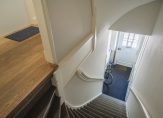 Entree op de begane grond, trap naar de 1e etage, entree appartement, trap naar de 2e etage met daklicht.