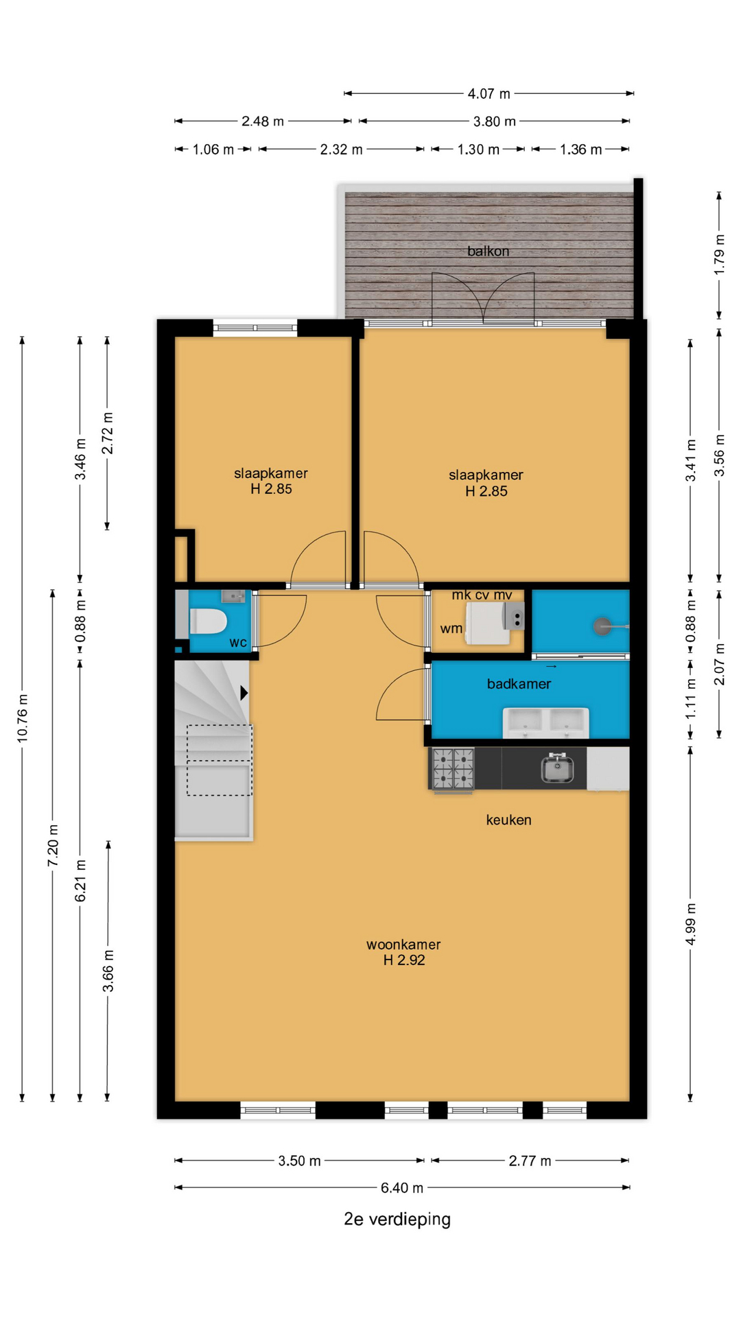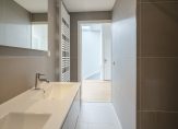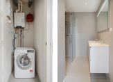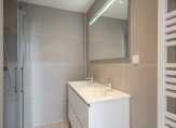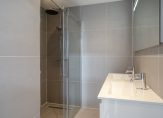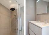 Tussen gelegen badkamer met douche met schuifdeur, handige spiegelkast en modern dubbel wastafelmeubel. Naast de badkamer een vaste diepe kast met de cv ketel en de opstelplaats voor de wasmachine. Ruime master bedroom aan de achterzijde van de woning met toegang tot het zonnige terras. Tweede kinder/logeerkamer aan de achterzijde van de woning ca. 2.50 x 3.46m.