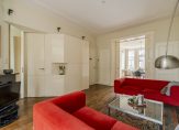 Het appartement is gelegen achter een karakteristieke Statenkwartier gevel in een voormalig 3-laags herenhuis met hoge plafonds, voorbalkon en riante kamers met zeer gunstige lichtinval.
