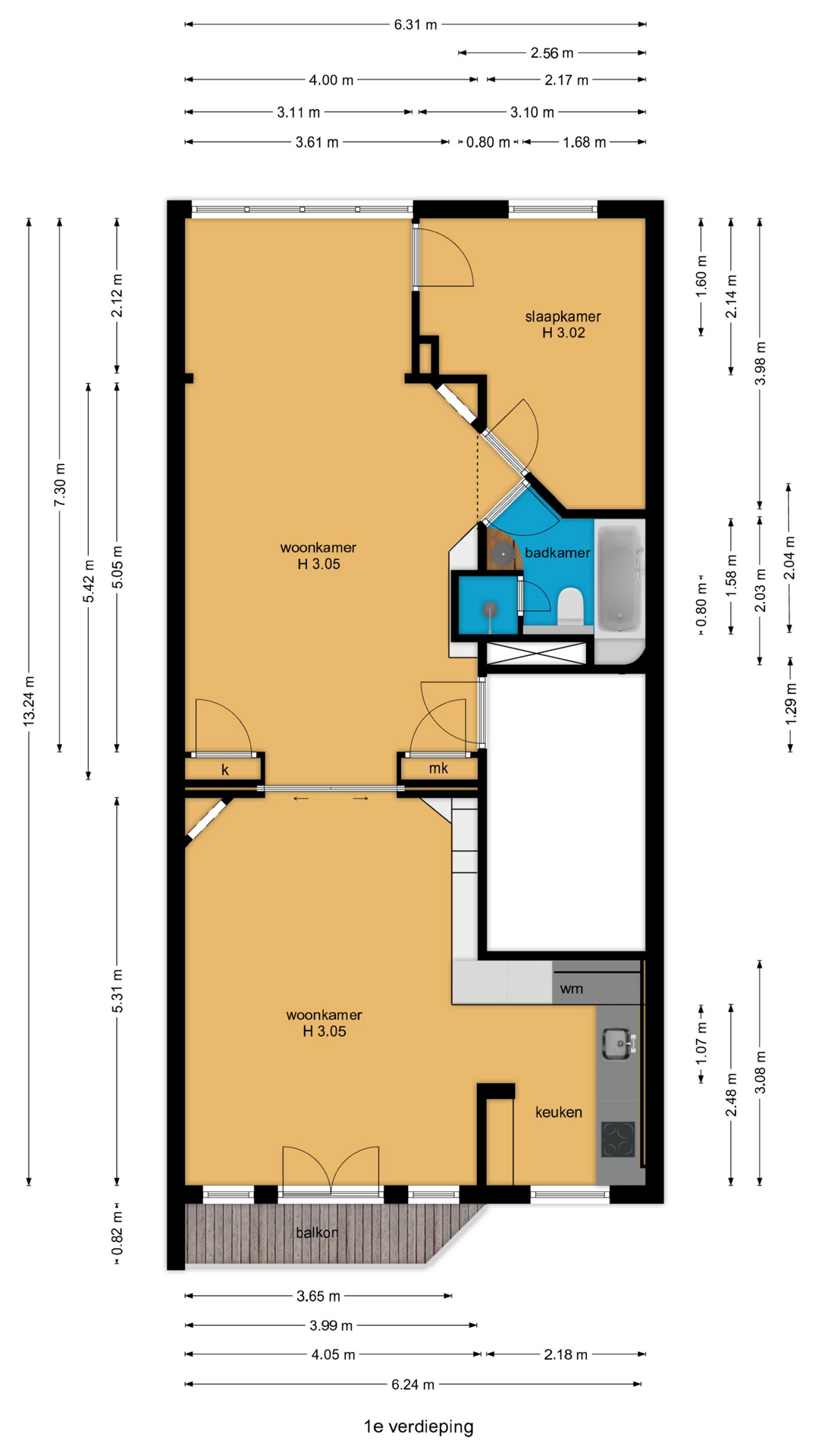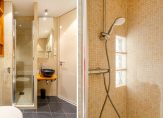 Gezamenlijke entree van het voormalige herenhuis, trap naar de 1e etage, entree appartement, spectaculaire kamers en suite met hoge plafonds en suiteseparatie met vaste kasten, openslaande deuren aan de voorzijde, grote raampartijen en ruime doorgebroken keuken. Aan de achterzijde riante slaapkamer in de achtersuite eveneens met grote raampartijen en uitzicht over de achtergelegen tuinen. De tweede slaapkamer is ruim van formaat en rustig gelegen aan de achterzijde van het gebouw. De tussengelegen badkamer is voorzien van fraai tegelwerk, meubel met waskom, toilet en douche.