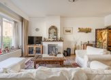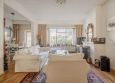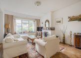 At the front of the apartment, a generously sized living room with an adjoining side room spans the full width of the property. This side room can easily be converted into a third bedroom. Via a few steps to the front garden. Two built-in storage cupboards are also present.