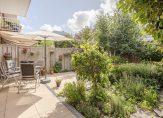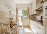 At the rear of the apartment are two bedrooms and a well-equipped kitchen, all of which offer direct access to the beautiful, southeast-facing garden. The garden features a spacious terrace and lush, mature plantings, offering peace and privacy.