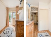 In de riante hal het separate toilet met fonteintje en de tussengelegen badkamer welke beschikt over een bad, een badkamermeubel met wastafel en een spiegelkast.