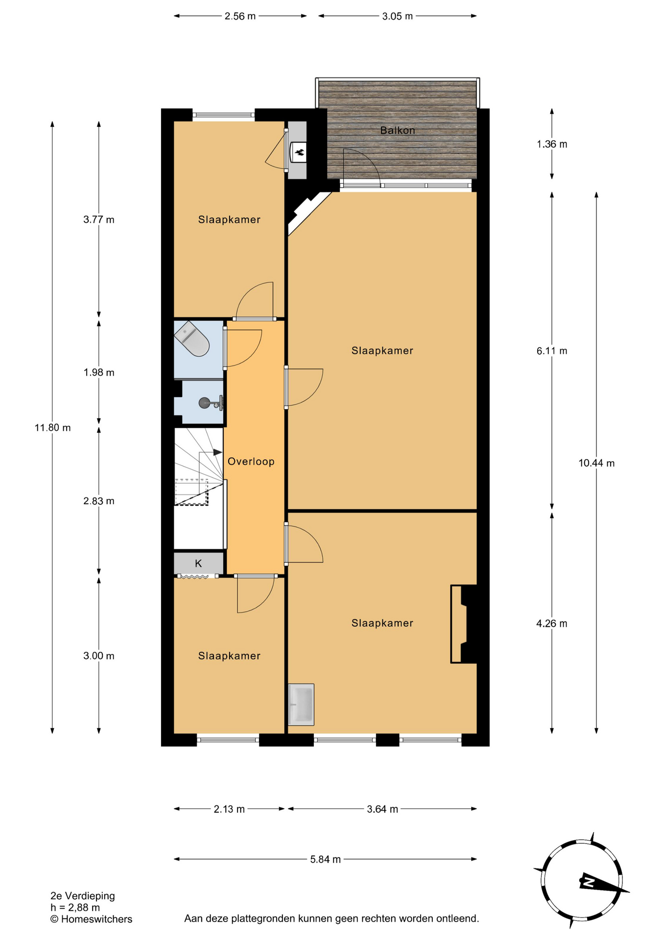 Trap naar de 2e etage, overloop met daklicht, ruime achterslaapkamer met deur naar met deur naar ruim achterbalkon, ruime voorslaapkamer ca. 3.13×212, voorzijkamer en achterzijkamer, toilet-douchecombinatie. Op deze verdieping is er voldoende mogelijkheid om een volwaardige tussenbadkamer te creëren waardoor de 4 kamers op deze etage behouden blijven.