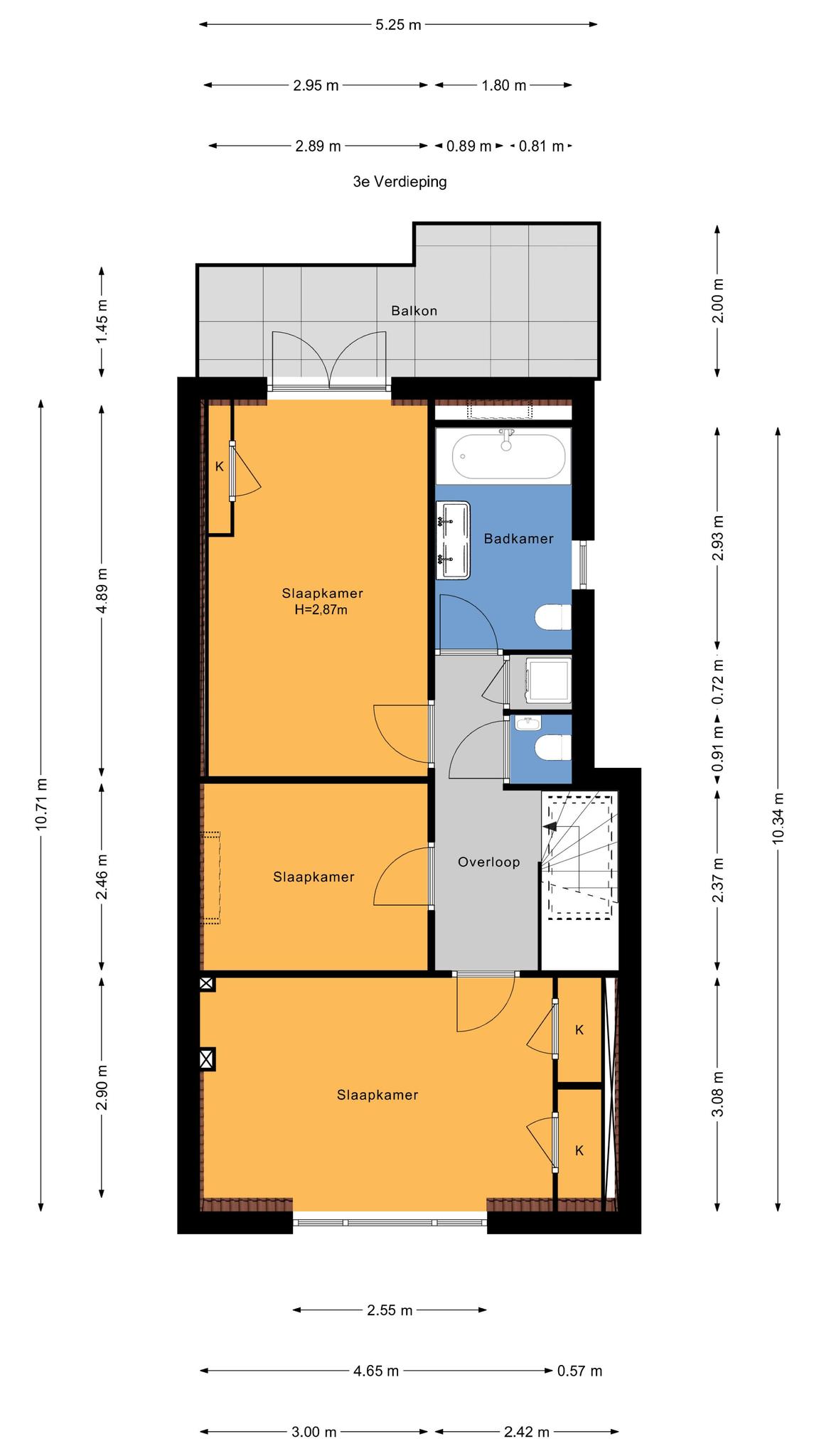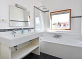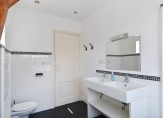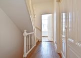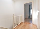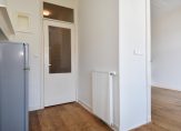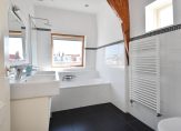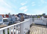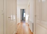 Trap naar 3e etage eveneens volledig voorzien van houten lamelvloeren met brede delen, lichte overloop met groot daklicht, modern toilet met fontein, wandcloset, mechanische ventilatie, grote witte wandtegels en antracietkleurige plavuizen vloer, grote voorkamer over de volle breedte met ornamenten plafond , schouw en 2 vaste kasten, grote achterkamer met vaste kast en openslaande deuren naar heerlijk L-vormig zonneterras, zijkamer met “Velux” dakraam, nette badkamer met ligbad met douchewand, dubbele wastafel met meubel en spiegel, wandcloset, vloerverwarming, mechanische ventilatie, handdoekradiator, inbouwverlichting, grote witte wandtegels, antracietkleurige plavuizen vloer en “Velux” dakraam, stook= en wasruimte met opstelplaats wasmachine en Cv- combiketel.