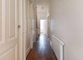 Eigen entree op de begane grond, ruimte voor de trap, overloop op de 1e etage met trap naar de 2e etage welke volledig voorzien is van houten lamelvloeren met brede delen, gang met 2 diepe bergkasten en modern toilet met fontein, wandcloset, mechanische ventilatie, grote witte wandtegels en antracietkleurige plavuizen vloer, heerlijk lichte doorgebroken kamers en suite met ornamenten plafonds, schouw met open haard aan de voorzijde en , serre met inbouwverlichting en doorbraak naar open keuken met aanrecht in L-opstelling, 11/2 rvs spoelbak, close in boiler, vaatwasser, magnetron, 5 pits rvs “Boretti” fornuis met oven en rvs afzuigkap, schouw, losse koel/vriescombinatie en inbouwverlichting.