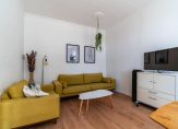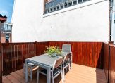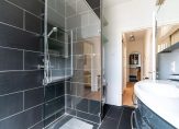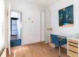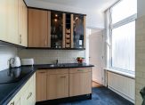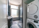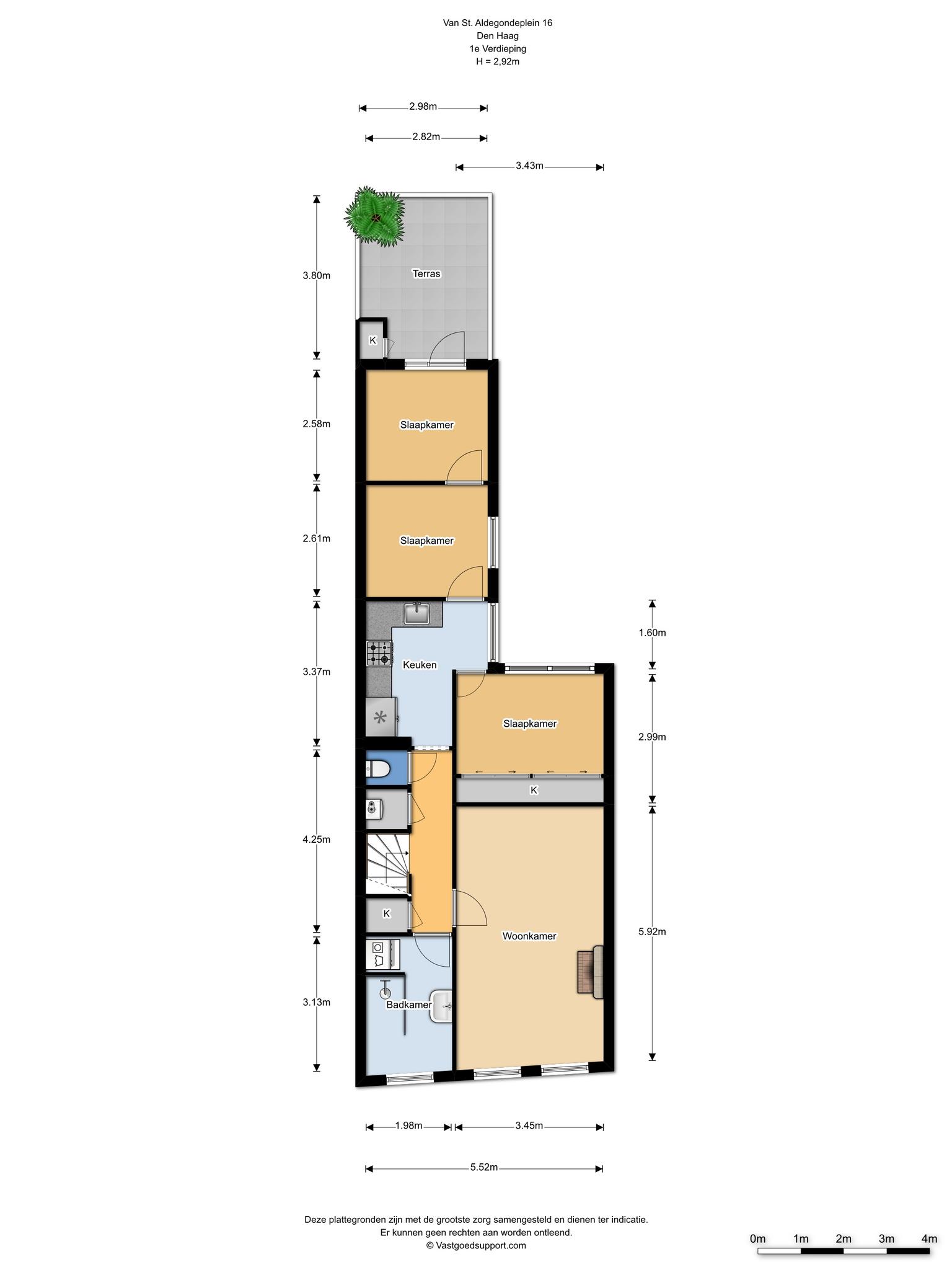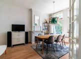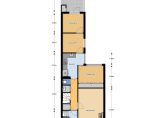 Entree woning op straatniveau, trap naar de eerste etage, overloop met twee vaste kasten waarvan een met opstelplaats voor de cv-ketel en een modern toilet. Vanuit de overloop de woon-/eetkamer met uitzicht over het plein, moderne badkamer voorzien van vaste wastafel in meubel, handdoekradiator, mechanische ventilatie, wasmachine-aansluiting en inloop regendouche. Aan de achterzijde een ruime slaapkamer met vaste kastenwand, ruime keuken in L-opstelling  van voorzien inductie kookplaat, koelkast, vaatwasser en afzuigkap, doorloop naar 2e slaapkamer en achtergelegen derde slaapkamer met deur naar ruim terras met steigerdelen vlonders en balkonkast.