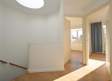 Vanuit de overloop de trap naar de tweede etage, overloop met groot rond daklicht, deze etage is efficiënt ingedeeld met nog drie slaapkamers waar in alle drie gemakkelijk een 2-persoonsbed past. Verder op deze etage de technische ruimte en de tweede badkamer met douchecabine, toilet, wastafel en berging in de knieschot.