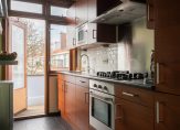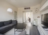 The exceptionally bright en-suite living and dining room is adorned with original sliding partition doors and four built-in cupboards. French doors open onto the sunny balcony, perfectly positioned to enjoy the afternoon and evening sun.