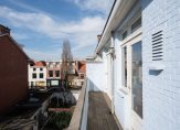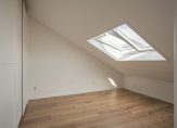 The landing benefits from a Velux window and a modern WC with a washbasin unit (with the possibility of adding a shower). The front bedroom, with two Velux windows and sliding wardrobes spanning the full width, enjoys picturesque views of the Grote Kerk. A spacious children’s bedroom sits at the rear, while the master bedroom offers abundant storage within the insulated eaves. Additionally, preparations have been made for the future installation of solar panels.