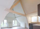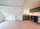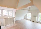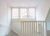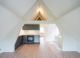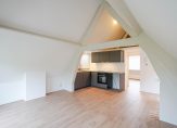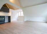 Entree van het complex op straatniveau, trap naar de 1e etage, entree appartement, trap naar de 2e etage, woonkamer met gunstige lichtval dankzij grote dakkapel, balken in het zicht en open keuken in hoekopstelling voorzien van inductie kookplaat, rvs gootsteen, oven en vaatwasser. De slaapkamer is rustig gelegen aan de achterzijde en ruim van formaat. De stijlvolle badkamer beschikt over fraai tegelwerk, inloopdouche en wastafel. Het aparte toilet is voorzien van een wandcloset.