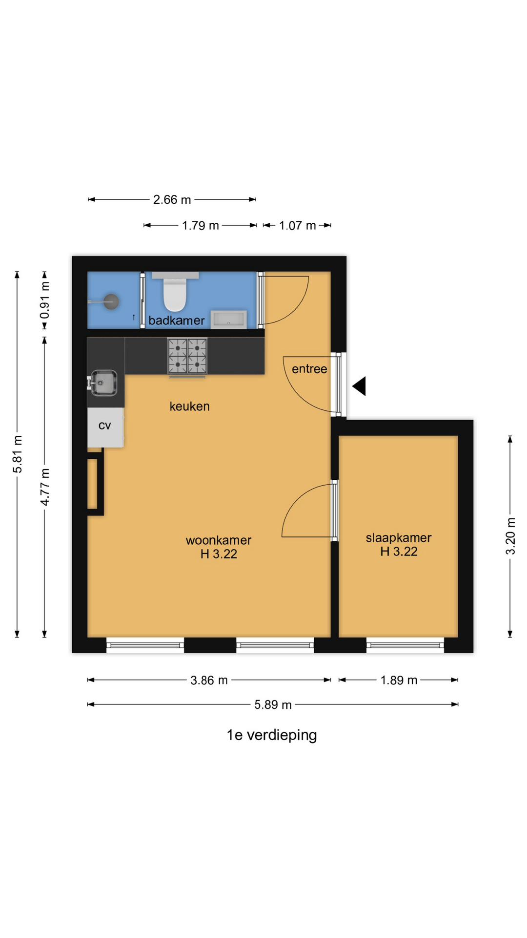 Gezamenlijke entree, trap naar de eerste etage, entree appartement, woonkamer met vrij uitzicht richting het Regentesseplein, grote raampartijen met dubbel glas aan de voorzijde, hoge ornamenten plafonds, moderne open keuken voorzien van gaskookplaat, combioven, wasemkap, gootsteen en koelkast. Vanuit de woonkamer de fraai betegelde badkamer voorzien van badkamermeubel met wastafel, wandcloset, handdoekradiator en douche. De slaapkamer is goed van formaat en gelegen aan de voorzijde van het gebouw.