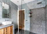 The cosy eat-in kitchen is equipped with a combination oven, dishwasher, American-style fridge-freezer, Smeg gas cooker with a large oven, washing machine connection, underfloor heating, and a breakfast bar. The delightful terrace, accessible from the kitchen, enjoys the evening sun and is truly a haven of tranquillity. Beyond, there is a practical storage shed/studio for Christmas decorations, suitcases, and surfboards, complete with electricity. A second, slightly elevated terrace is generously proportioned.