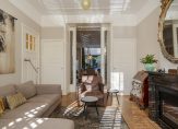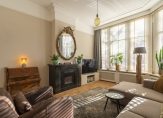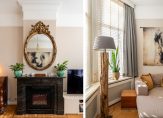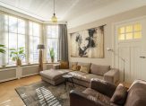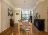 Charmante 4-kamer parterrewoning met fraai aangelegde achtertuin en totaal ca. 110 m² woonoppervlak verdeeld over karakteristieke kamers en suite met hoge ornamenten plafonds, moderne keuken met hoogwaardige apparatuur, schitterend sanitair en twee riante slaapkamers.