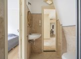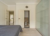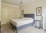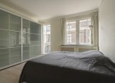 Aan de achterzijde de hoofdslaapkamer met ingebouwde kastenwand, deur naar terras en badkamer voorzien van inloopdouche, ligbad, douche en deur naar balkon. De dichte keuken is eveneens rustig gelegen aan de achterzijde en voorzien van 5-pits rvs gasfornuis met oven, koel-/vriescombinatie, inbouwmagnetron en vaatwasser.