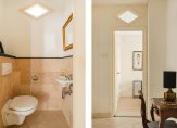 Entree van het complex op straatniveau, trap naar de eerste etage, entree appartement, imposante hal van het appartement met apart toilet voorzien van wandcloset en fonteintje. Aan de voorzijde de woonkamer gelegen op het zonnige zuidwesten met voorbalkon, lamelparketvloer en stenen schouw. Tussen gelegen slaapkamer die vanuit de hal en de woonkamer is te bereiken die tevens zeer geschikt is als ruime werkkamer en riante slaapkamer aan de voorzijde met eigen badkamer voorzien van fraai tegelwerk, wandcloset en douche.