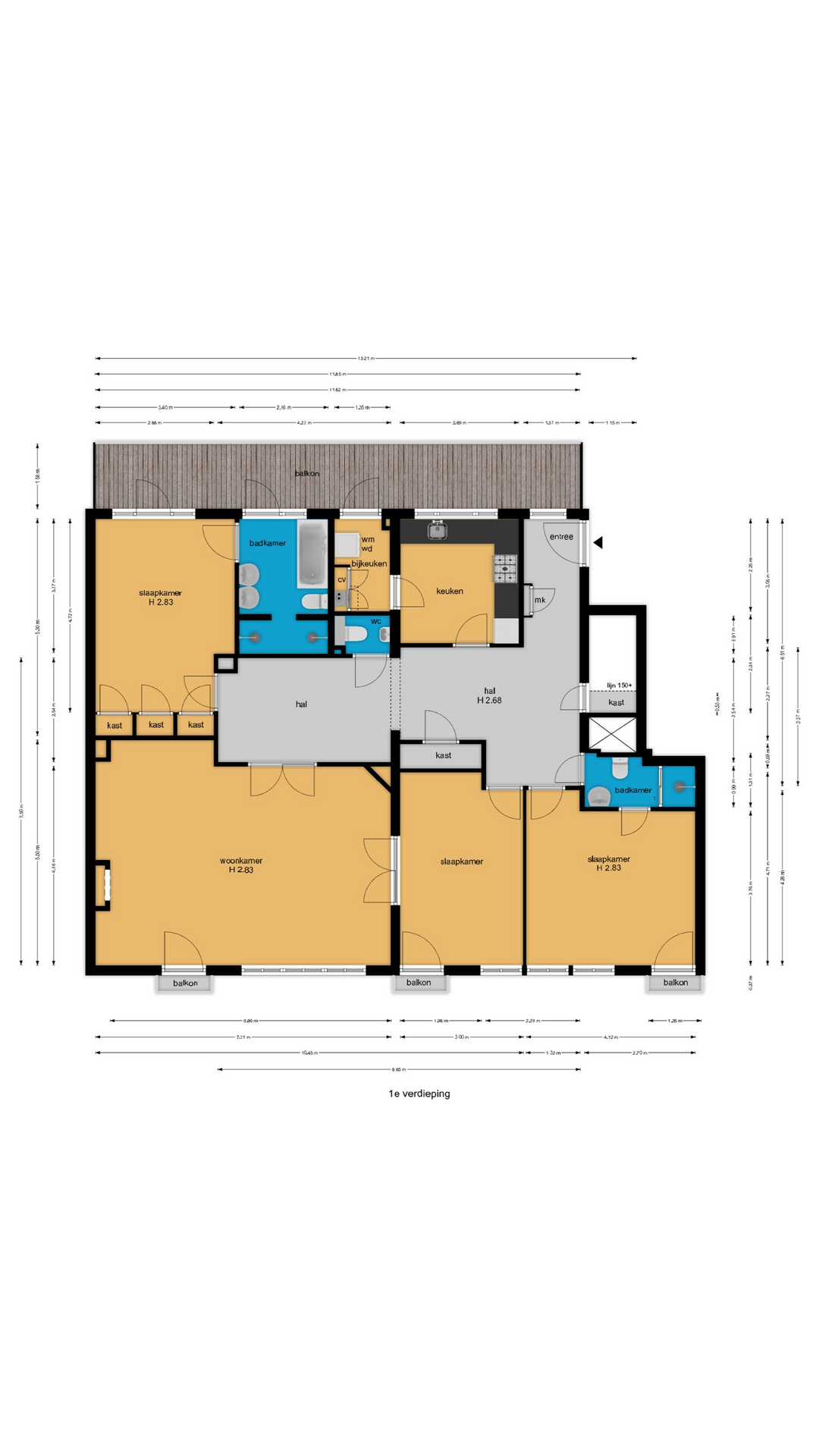 Uitzonderlijk ruim opgezet appartement met totaal ca. 144 m² geheel verdeeld over één verdiepingsvloer met een riante living met schitterende lichtinval vanwege ligging op het zuidwesten, moderne open keuken in hoekopstelling, drie zeer riante slaapkamers en twee badkamers. Bovendien beschikt dit appartement op de eerste etage over een terras van ca. 18 m², drie charmante balkons en een ruime eigen berging die in de onderbouw van dit kleinschalige complex is gelegen.