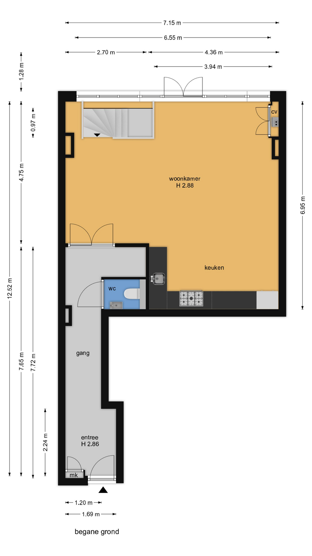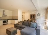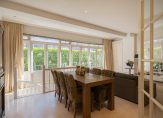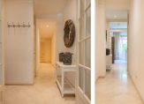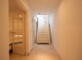 Eigen entree op straatniveau, ruime hal met toilet, dubbele deuren met glasroedeverdeling naar woonkamer over de volle breedte van de woning. Vrijwel de gehele achterzijde beschikt over raampartijen waardoor een zeer gunstige lichtinval ontstaat. De open keuken beschikt over hardstenen werkblad, 5-pits gasfornuis met brede oven, rvs afzuigkap en vaatwasser.