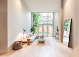 Entree complex voor 253/253a, entree appartement, hal met garderobekast, toilet met fraai tegelwerk, wandtoilet en fonteintje. Gastenbadkamer in de hal en tevens perfect geschikt voor na het surfen, deze badkamer is voorzien van hoogwaardig tegelwerk, inloopdouche en meubel met waskom. Vanuit de hal de indrukwekkende living met een plafondhoogte van ca. 4,1 meter waarbij de gigantische raampartij aan de achterzijde voor een spectaculaire lichtinval zorgt. Vanuit de woonkamer openslaande deuren naar de riante achtertuin van ca. 54 m² die heerlijk op de middag- en avondzon is gelegen. In de woonkamer is een entresol geplaatst die op meerdere manieren valt te gebruiken, bijvoorbeeld als zitkamer, riante werkkamer of hoofdslaapkamer. Onder de entresol is de luxe keuken gerealiseerd met hardstenen werkblad en hoogwaardige inbouwapparatuur.
