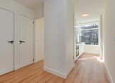 Trap naar de 2e etage, entree appartement, hal met garderobekast, apart toilet, slaapkamer aan de voorzijde, woonkamer met zeer gunstige lichtinval dankzij grote raampartijen aan drie zijden en openslaande deuren naar ruim balkon dat op de middag- en avondzon is gelegen. De hoofdslaapkamer is rustig gelegen aan de achterzijde van het complex en goed van formaat. De keuken is eveneens aan de achterzijde gelegen en beschikt over eenvoudig keukenblok en opstelplaats voor de cv-ketel. Tot slot de tussengelegen badkamer met keurig tegelwerk, inloopdouche en meubel met wastafel.